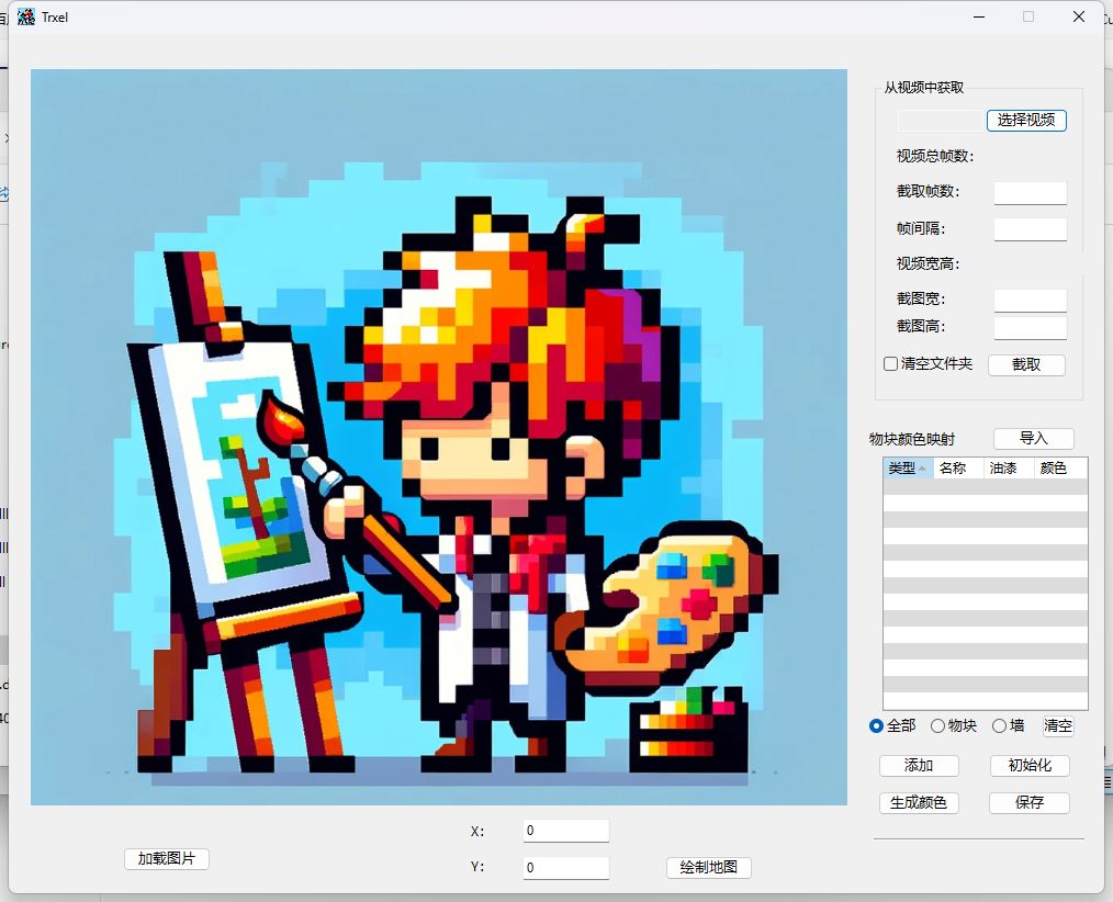 原理:像素画主要是根据不同物块(包括实体物块和墙)搭配不同油漆后会在地图上显示不同颜色。
