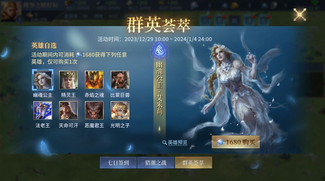 活动期间可以使用钻石购买任意一个列表中的英雄,仅限购买1次。