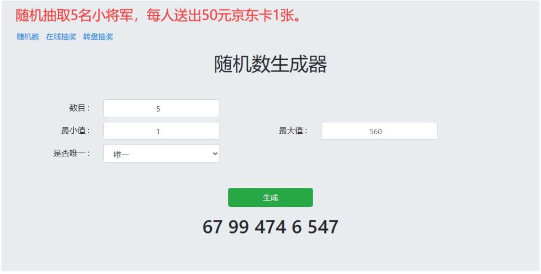 以下为随机抽奖的记录截图
