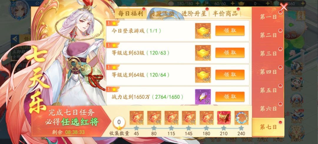 开服七天乐不停,只需完成任务,即可收获星星。累积足够的星星即可豪享超级大礼!获得210星即可免费获得强力红将自选箱,240星还可获得超级好运的“锦鲤翻夏江”头像框!
