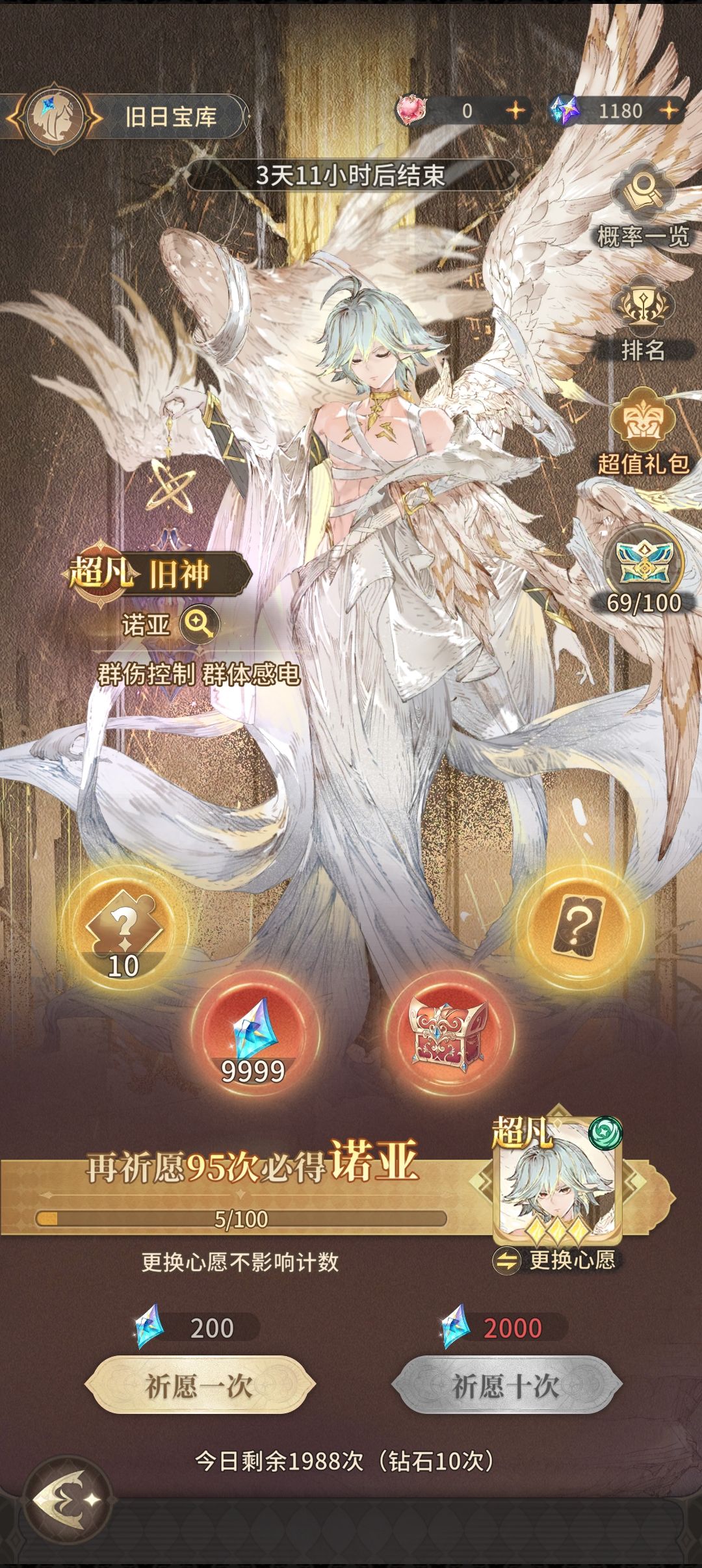 群星之轨是快速获取心怡4技能超凡不朽者的方式(每周都会更换不同的up不朽者)。同样的2000钻10连,1天最多只能用钻石抽2次10连。100抽保底必出。