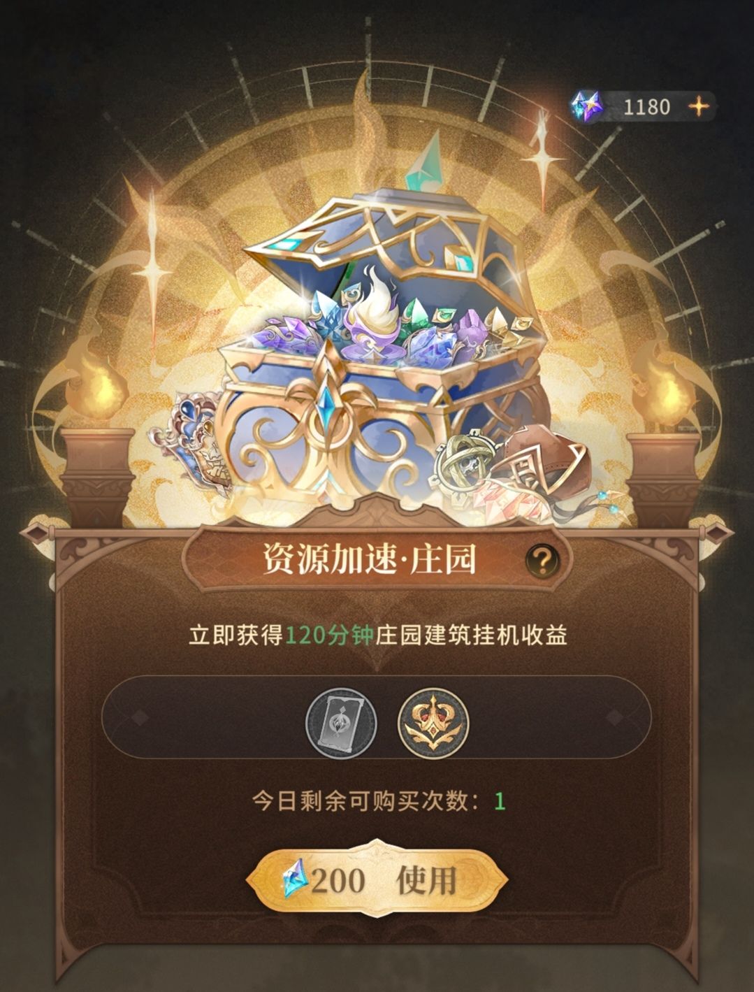 200钻石可以获取2小时的庄园建筑挂机收益。