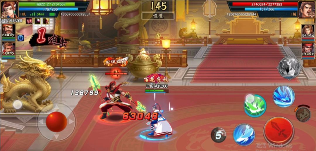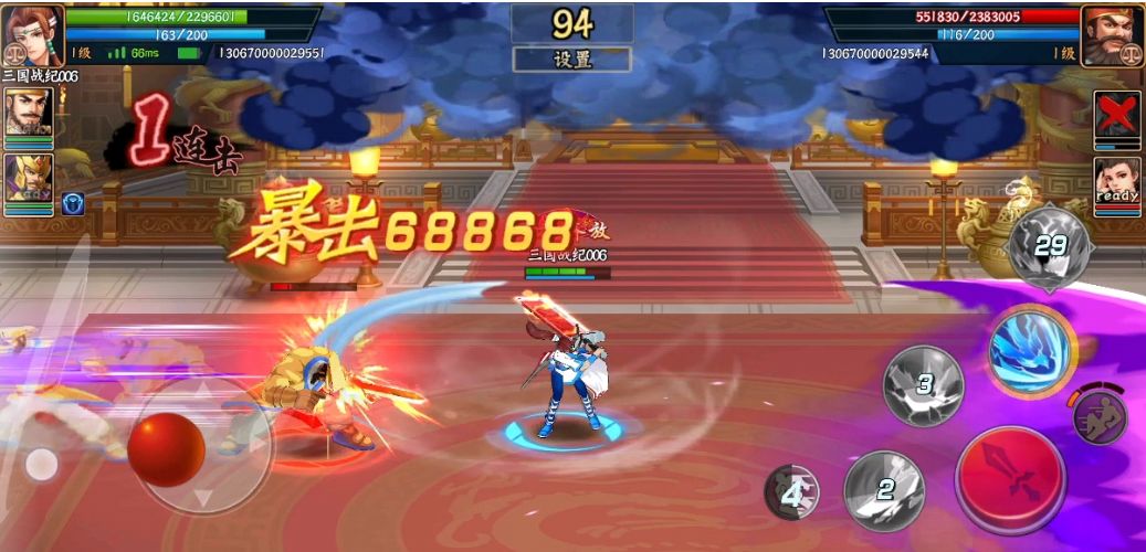 一技能-定镇乾坤:剑气风暴的纵观全场,同时附带吸附效果,可以作为先手技能使用,对方很难靠走位躲避。最后一下剑气破霸体,可以有效克制霸体武将冲脸。
