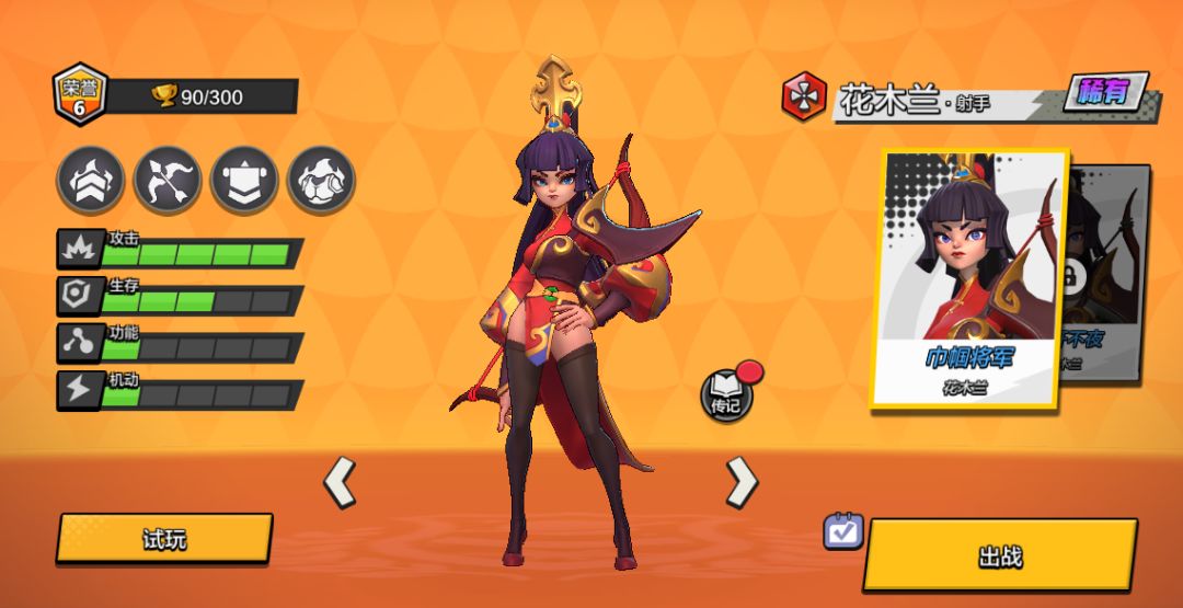 我们知道,火星总动员这个游戏虽然没有场外的升级,但是英雄之间的强度还是有很大的不同的。在我们没有抽到那些流彩传奇的昂贵英雄之前,是否有足够强力的“平民”英雄呢?其实一上来送给玩家的新手英雄花木兰就是一个很适合上分的“隐藏”英雄。一起看看吧~
