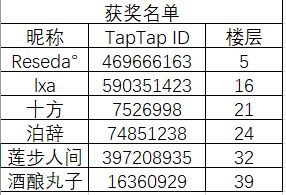 各位馆主大人感谢大家的关注和支持,以下是本次首测活动的中奖名单: