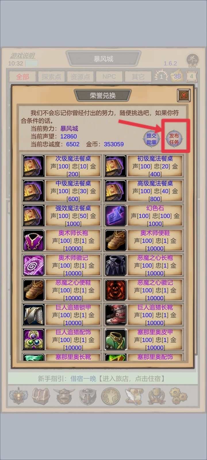 兑换套装这个界面,右上角发布任务