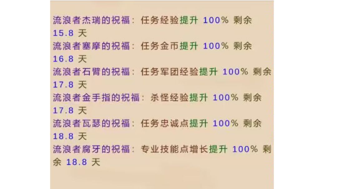 一个是地精祝福。你打怪的时候,地精会乱入,击杀以后有几率获得祝福,低级时候需要额外的杀怪经验,和流浪者叠加,升级很爽。后期设置里面可以锁定祝福为任务完成以后增加获得额外的忠诚度,忠诚度后面可以刷新冒险者。。你刷队友时候会需要海量的忠诚度。所以前期就开始积少成多的存。