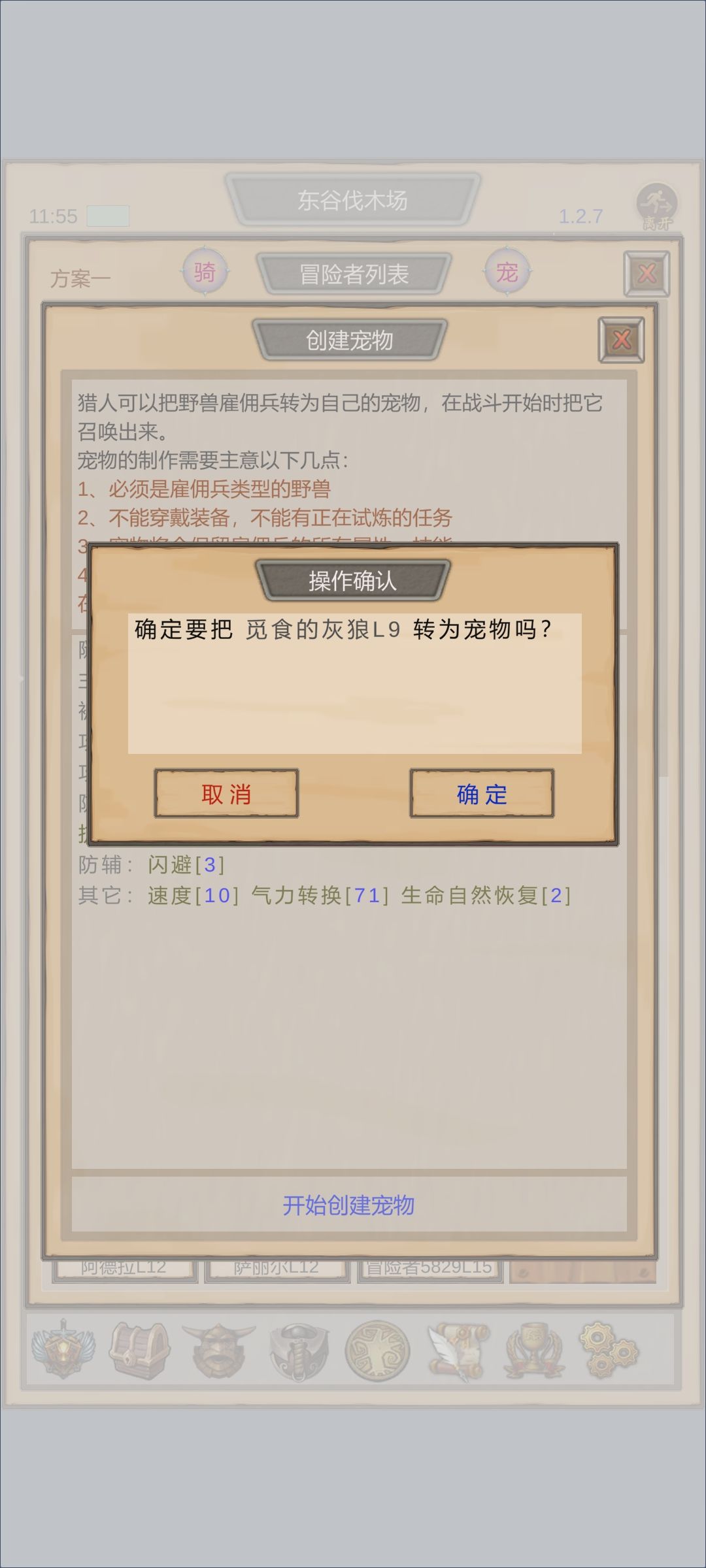 如下图点击创建宠物,就可以把这只野兽变为宠物了。在布阵界面,右上角宠那里,就可以安排猎人召唤出战。。