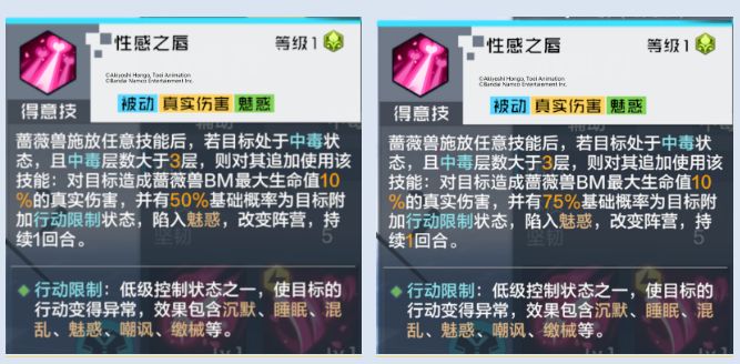 蔷薇兽BM改动1:得意技魅惑概率+25%