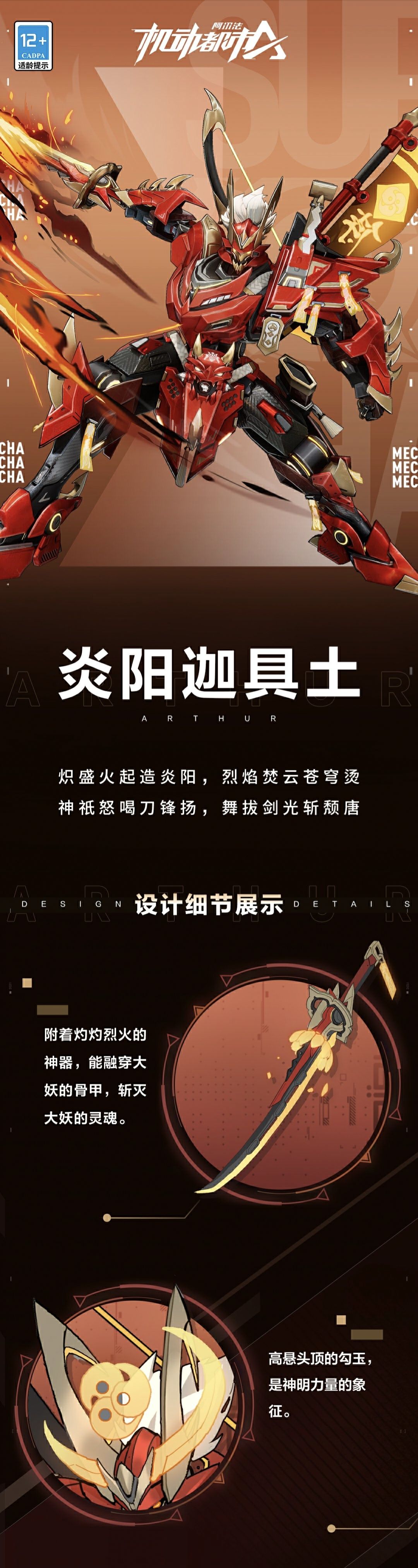 【皮肤细节&EX形态展示】亚瑟“炎阳迦具土”