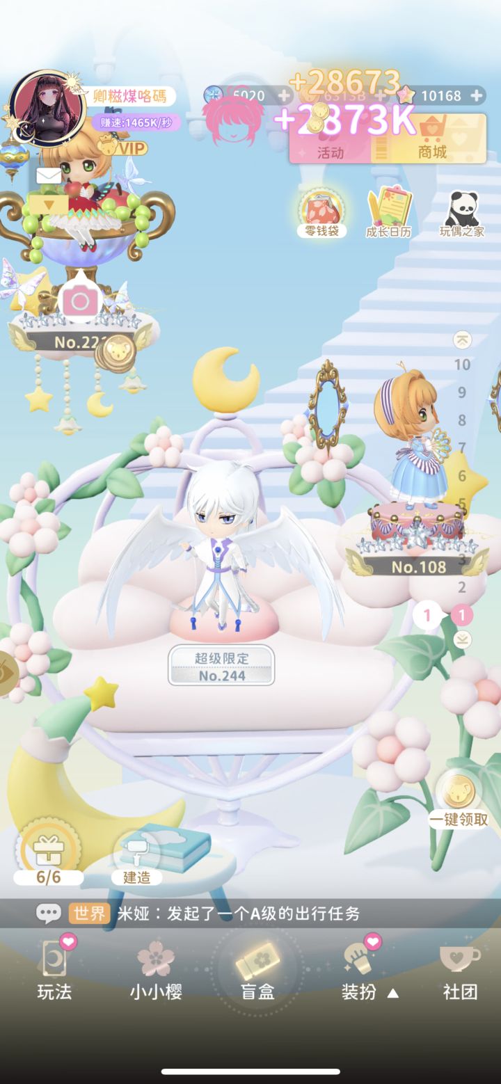 这样的话,每周可以拿到30张,刚刚好可以抽到6星小樱,,欧的话可能还能升级到绚丽款哦