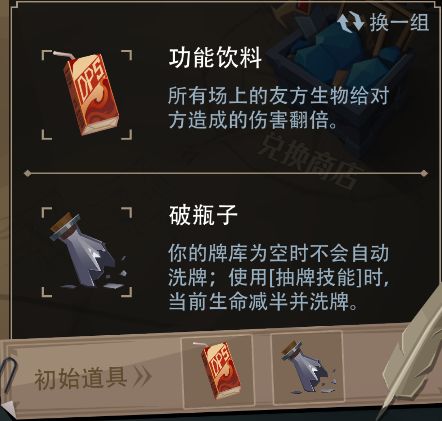 2、每次会随机刷新2个特殊的初始冒险道具(可更换1次);