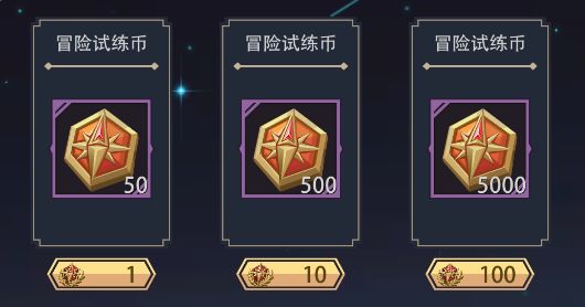 4、新增货币[冒险试炼币],原[试练奖币]可在兑换商店中按1:50的比例兑换为新的[冒险试炼币];