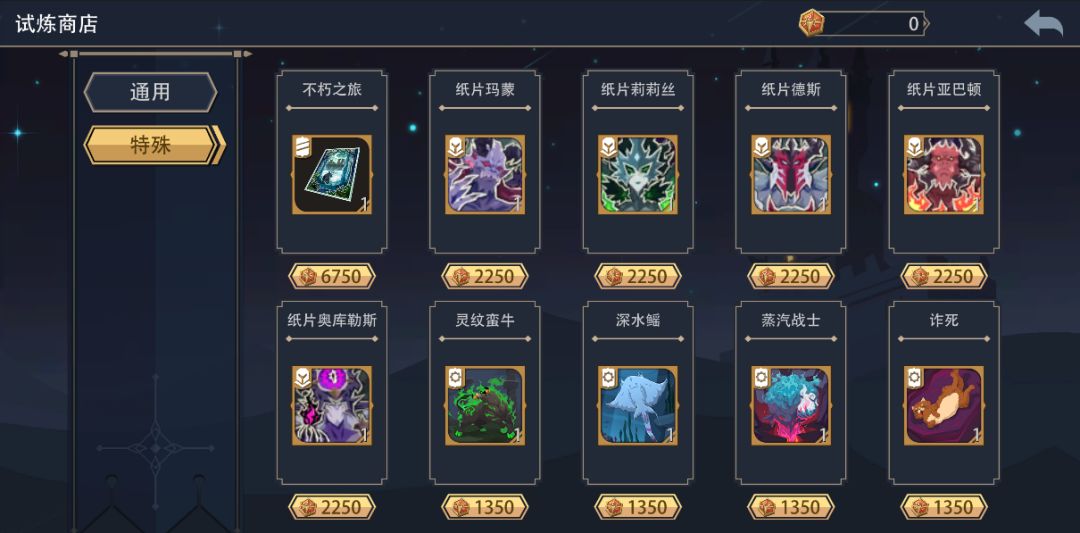 ※以下卡牌均在“冒险试炼场”中的兑换商店中兑换。