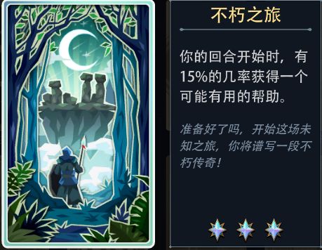 初始道具:你的回合结束时,若你的法力为0,则法力+1;否则恢复2点生命。每场战斗可触发2次。