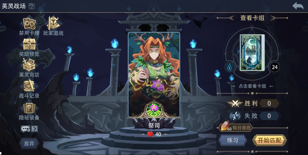 可使用当前套牌进行练习,战斗结果不会影响该套牌的匹配战绩。