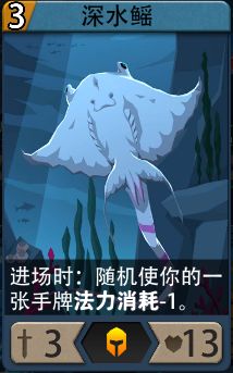 3费3攻13血,进场时:随机使你的一张手牌法力消耗-1。