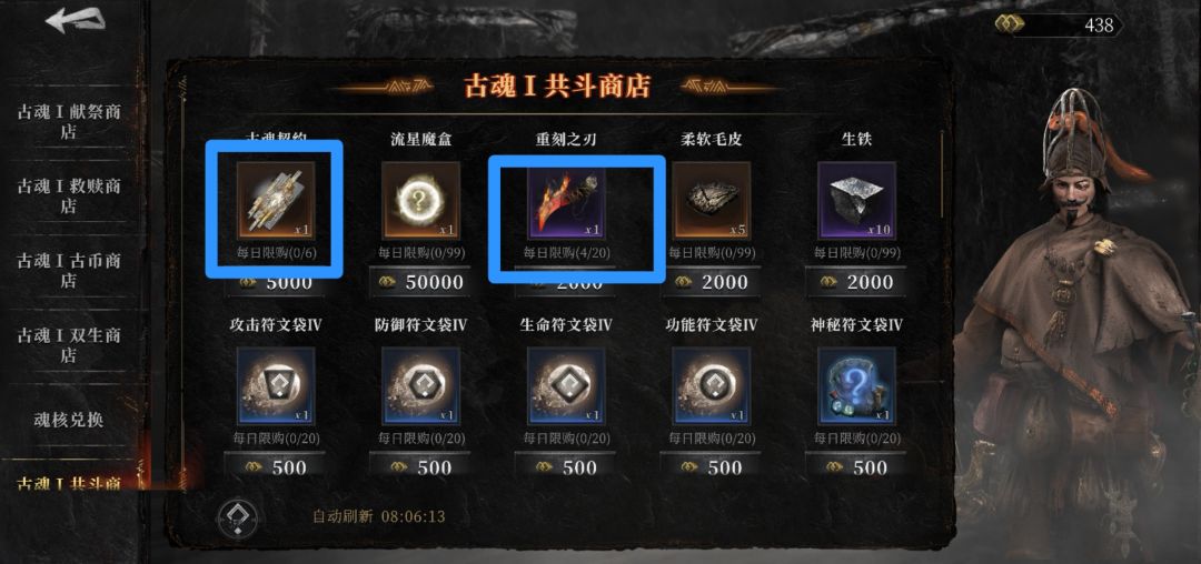 低氪档推荐月卡周卡通行证是必买的,因为我本身也是低氪档。每天的魂石就靠这几个拉起来。算一笔帐《月卡周卡每天的魂石是 540➕通行证的 120➕每日任务的 120 还有远征每天的 100 》不算活动排名等魂石奖励一天魂石就是 880,一个月按三十天算也是 26400,加上活动排名等魂石一个月最少也是 三万魂石,低氪档也只能长线发展才能玩得下去了。限购礼包里的魂石购买的都买一下,共斗商店推荐购买古魂契约和重刻石,因为符文的孔位需要大量的重刻石。古币商店推荐购买虚义结晶和粉尘,核魂进阶需量大。救赎献祭商店购买前面两个就行。