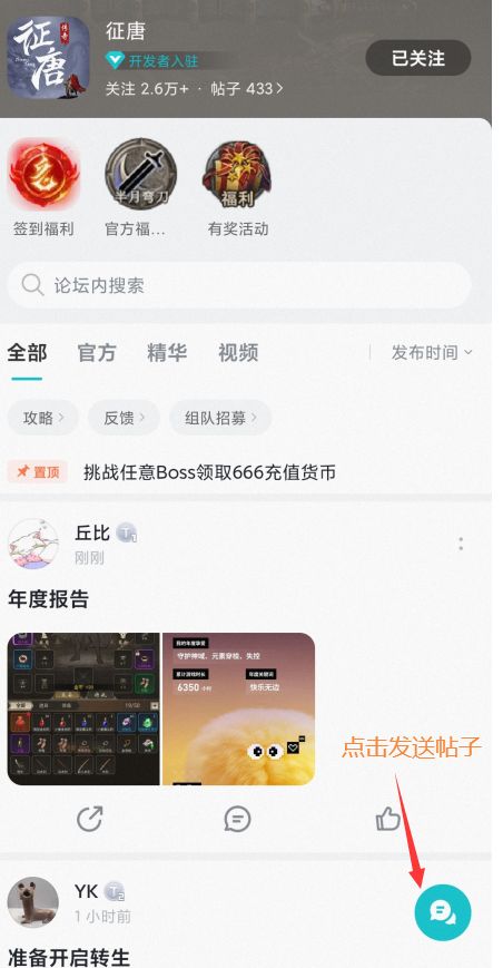 2.点击论坛右下方将年度报告和征唐游戏战斗截图添加发布