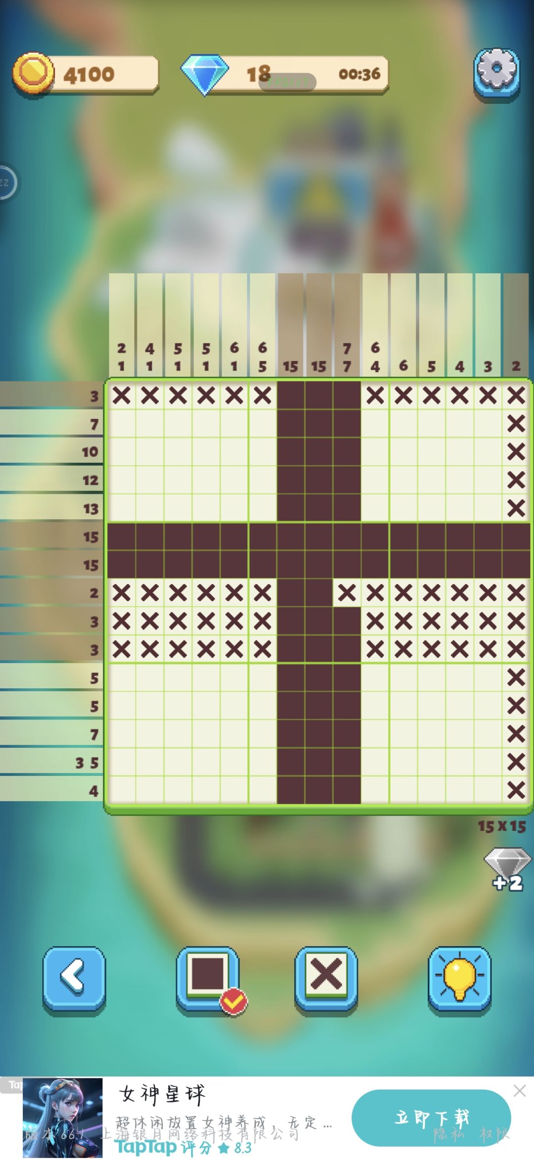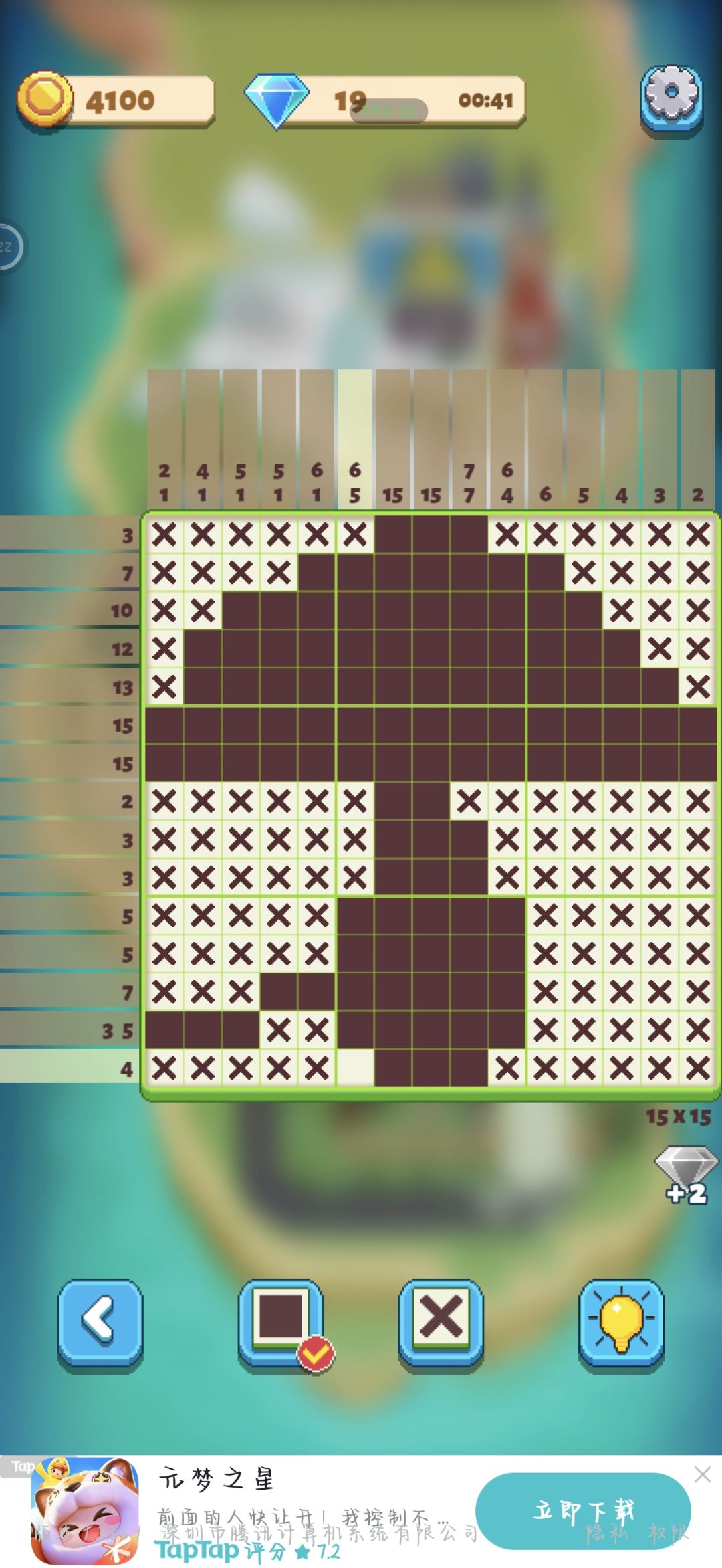 最开始的几乎都是6x6的,到后面可能会难度升级,12x12的也有可能。但是这条定律是通用的,即优先涂数大的行/列。比如6x6,我们就是尽可能找数字为6的行/列,这样就可得知该行/列全涂。