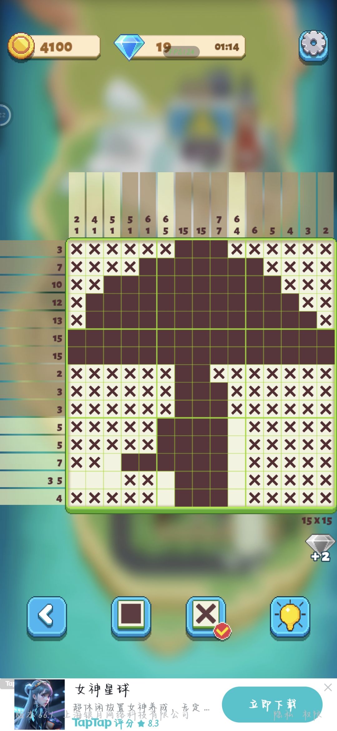 最终得到我们这个结果。把最后那个空白格涂上色就完成了这一关的谜题。这里留这一格是为了截图。