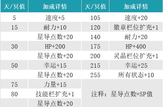 SP点数=星导点数,在角色天/冥路线奖励会以奖励的形式派发给对应的角色(阿鲁多为例,见下表)