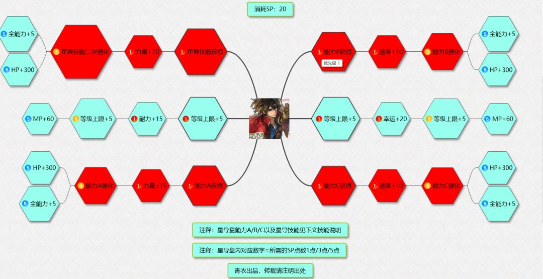 基础天冥优先点出星导技能、能力ABC和对应强化,刚好耗费20SP