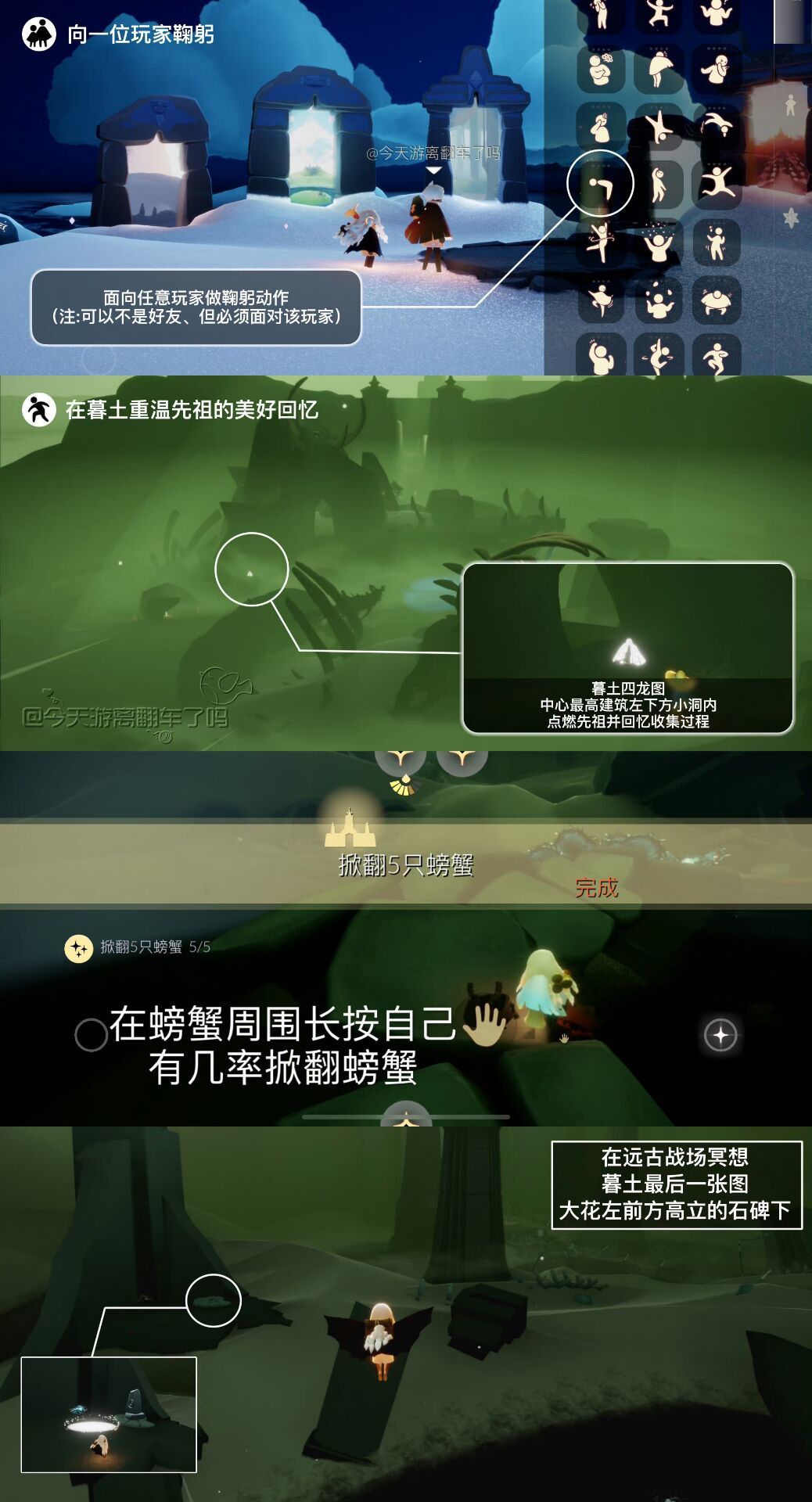 《光遇》游戏中每天的每日任务及大蜡烛的位置都不相同,玩家完成每日任务及收集大蜡烛都可以得到丰厚的兑换奖励,奖励可以用于兑换各种动作及道具,不过很多小伙伴不知道每日任务怎么做,又懒得自己去找大蜡烛的位置,我们汇总了每日任务的完成攻略以及蜡烛位置,一起来看看吧!
