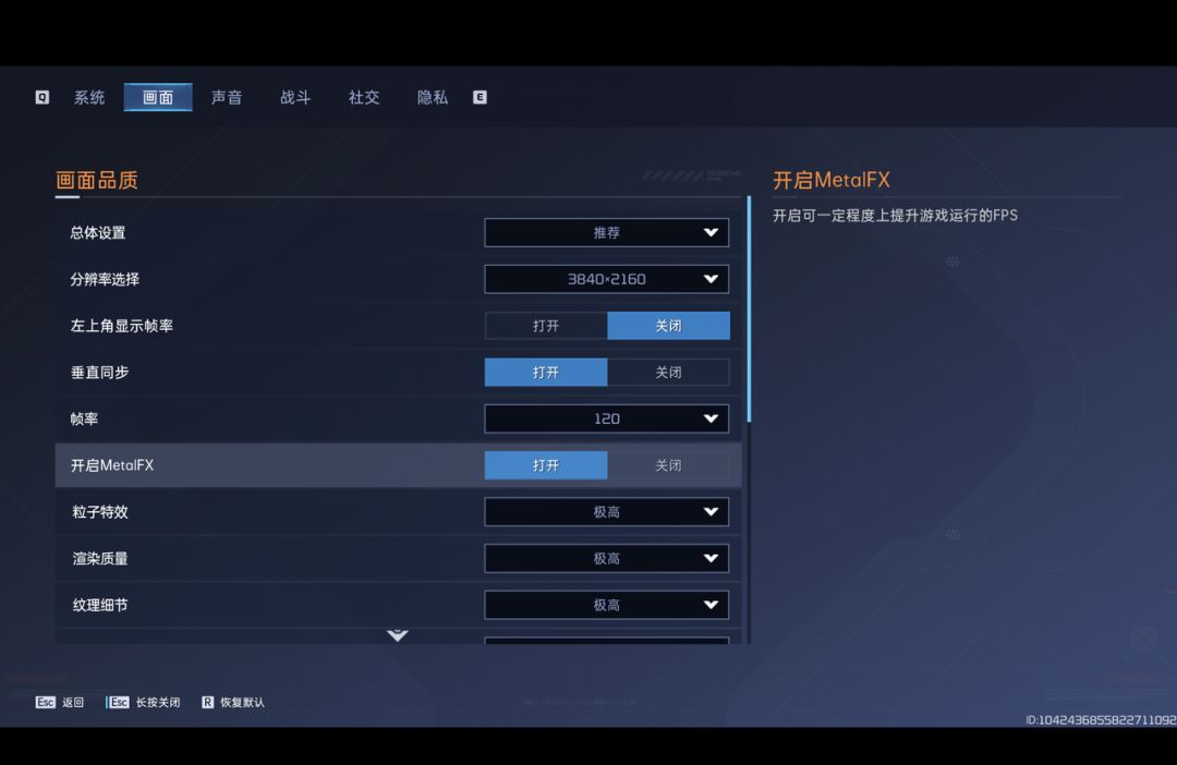 幸存者在配置允许的前提下,可以在游戏设置-画面 开启【MetalFX】选项进行体验。