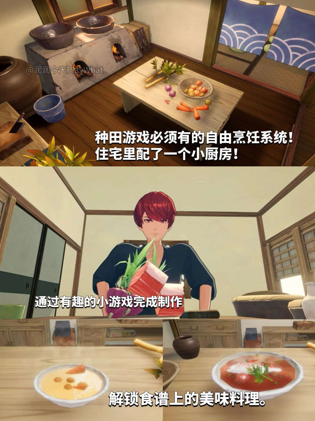 遵循四季规律,种植应季的农产品;经营农舍;利用多种多样的本土食材,钻研私房菜谱;改造老旧建筑,扩充房间、装饰家具,创造舒适的田舍环境。成为这里首屈一指的牧场主,破败荒废的田舍将在你的经营下重获新生!