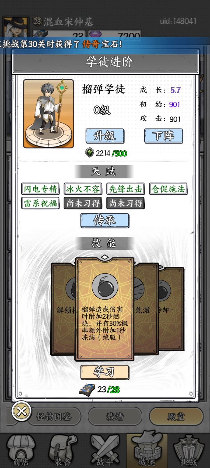 说一下我的观点,在选择学徒方面,我认为“技能>天赋>初始攻击>成长>品质”。下面说一下我的理由(个人观点,轻喷),首先我们要知道学徒毕竟只是一个辅助功能,再厉害的学徒伤害肯定也远低于法师本身,所以他的功能性要比伤害更重要。这也是为什么我把技能和天赋排在最前面的原因,当然天赋可以洗,所以其实选择的时候除了技能以外,第二考虑的其实还是攻击力和成长,但是单论重要性我是觉得天赋更重要一些,而且想洗出一个完美的天赋所需要的钻石量是相当大的(欧皇除外),反正我个人一万钻丢进去完全不够,后面我也会说说我洗天赋的方法,不一定是最好的,抛砖引玉吧,有更好的方法欢迎留言。下面我来分别说说每一个属性: