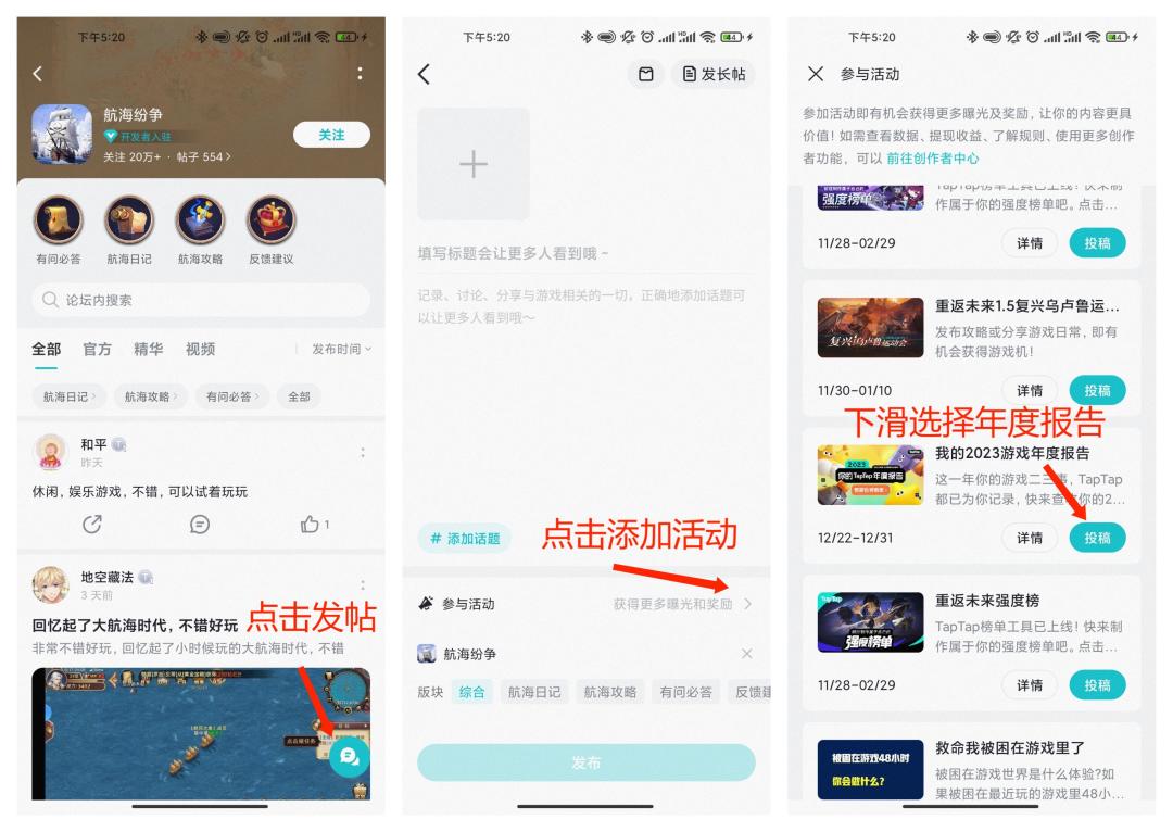 3.点击参与活动,选择我的2023游戏年度报告添加年度报告话题,成功发帖