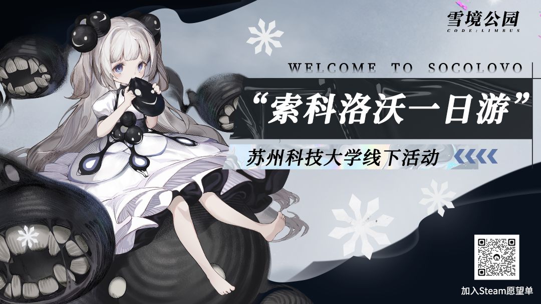 在这段时间的相处中,您的支持与热爱真切的融化了雪境的冰霜,这令我们欣喜万分。为了打磨出更优质的游戏,同时也倾听更多院长们的声音,我们将于本周末联合苏州科技大学电竞社举行“索科洛沃一日游”的【雪境公园】线下活动。