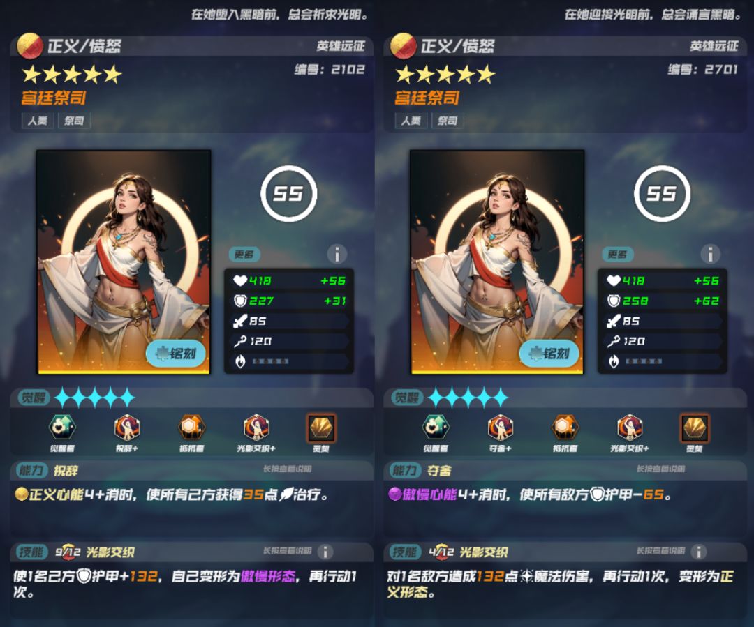 2.基础属性:建议用一星、四星、五星铭刻,二星、三星扔垃圾桶。一星铭刻性价比高,建议过渡使用。四星五星铭刻加成强悍,建议装备给主力。