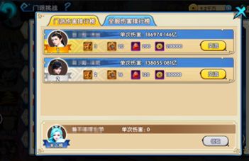 3、全服排位赛根据对该门派BOSS的单次排名进行奖励发放,单次伤害越高则排名越靠前;