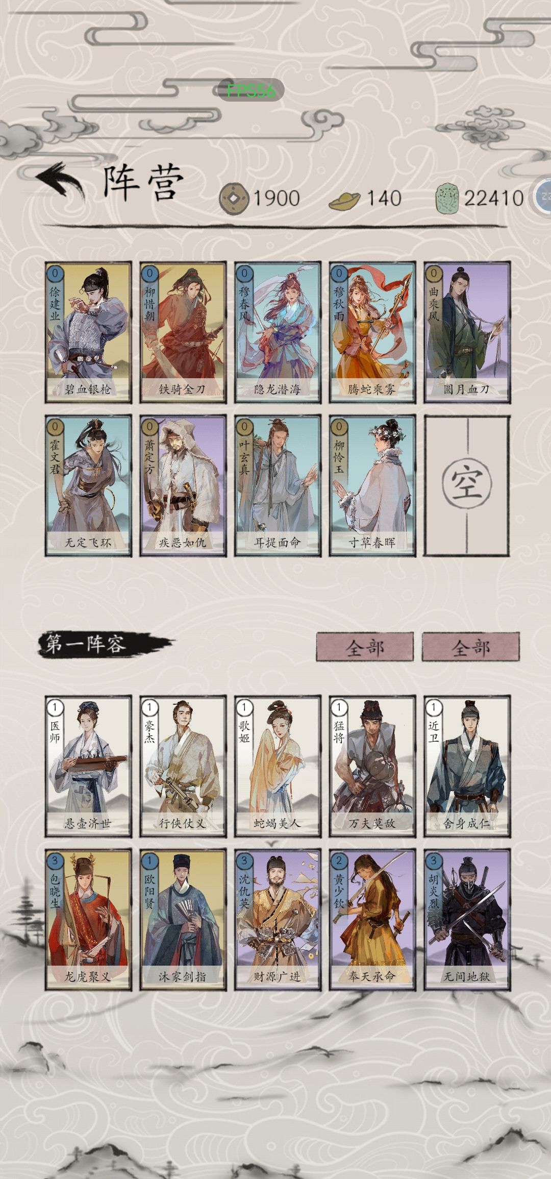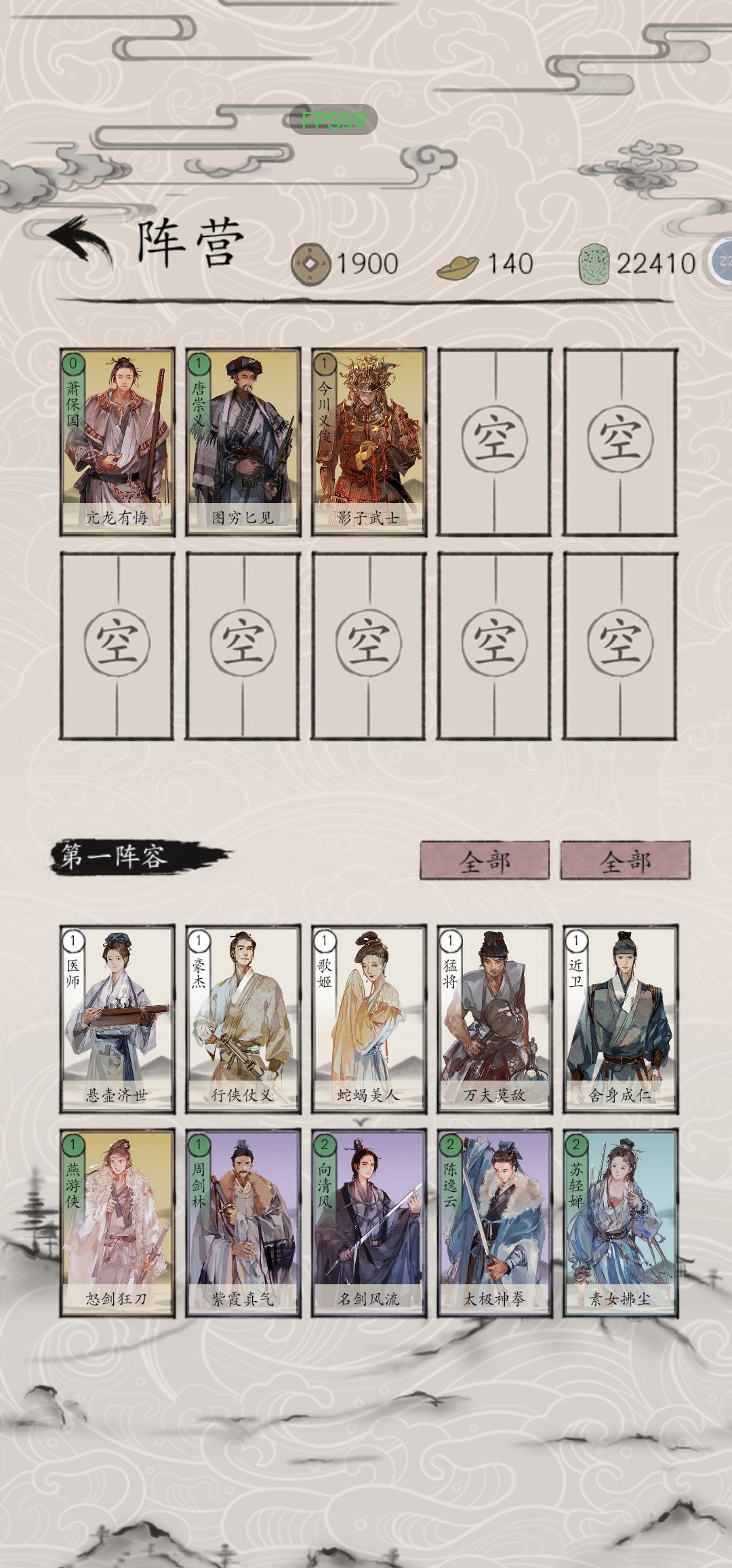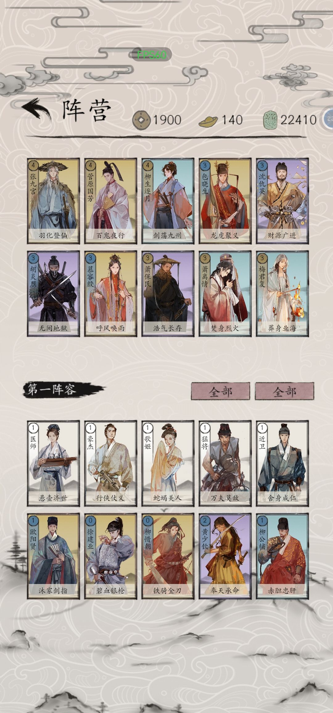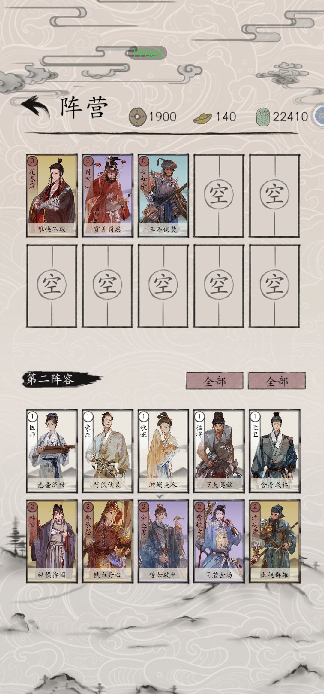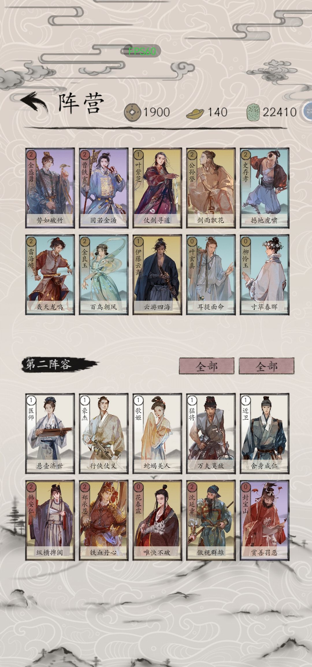 高费牌有:4费,张九宫,菅原国芳,柳生逐月;3费,包晓生,沈仇英,胡炎烈,慕容殷,萧保民,梅君复,萧离情(如图2),呼延英,苗花奴。