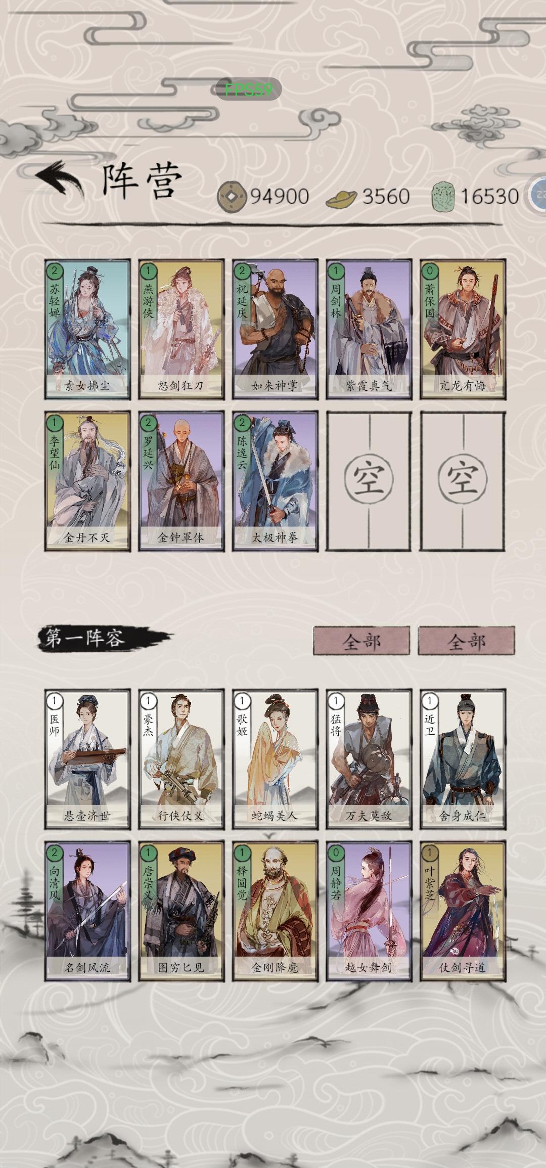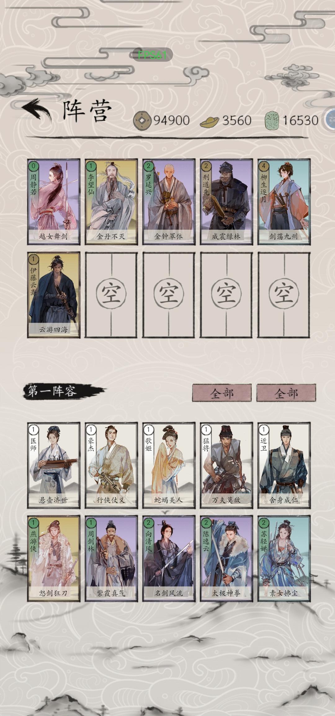 1.真气流:以苏轻婵,燕游侠,祝延庆,周剑林为核心输出手段,辅以萧保国,陈逸云,李忘仙,罗延兴防御。(如图1)