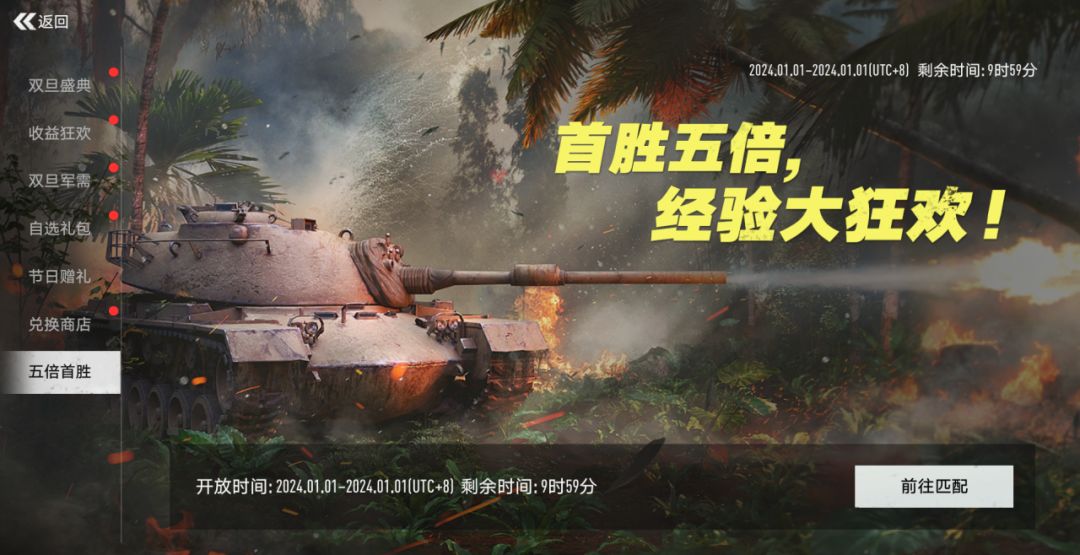2023年12月25日和2024年1月1日双旦佳节当日,全天开放首胜个体经验5倍加成。
