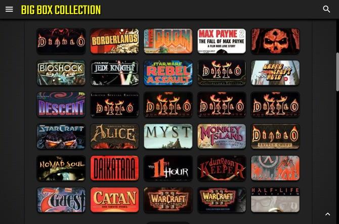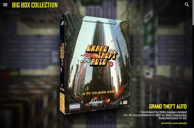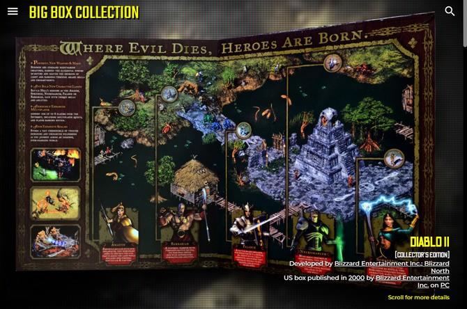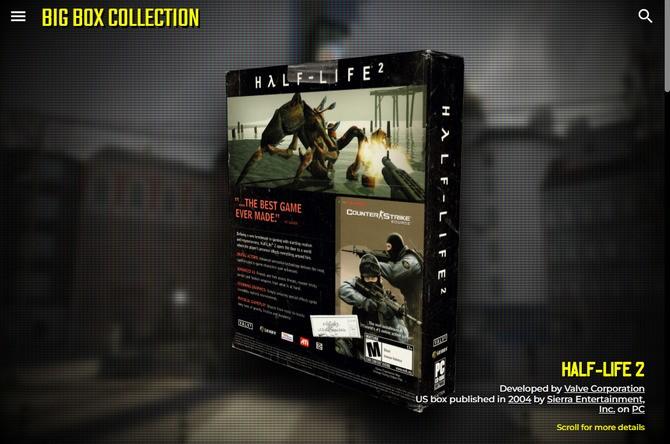 ·《Big Box Collection》站目前已经收入了多达758款各类经典新旧PC游戏,全部运用高清3D模型多角度展示精美的PC游戏实体盒子,不但外观设计,盒子里面的完整内容物也在展示之列,