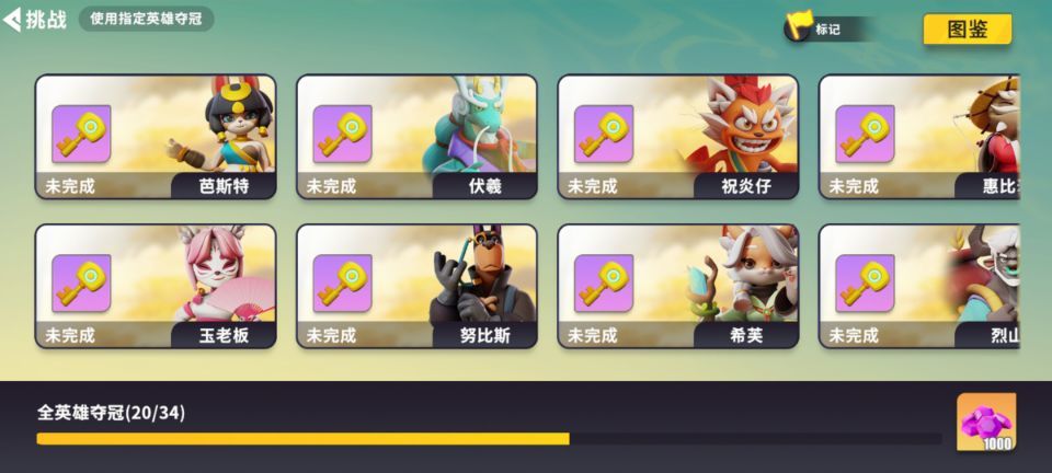 完成指定英雄夺冠任务可以获得34把【宝箱钥匙】1000【钻石】,有人会问了“我都没这个英雄怎么白嫖,又是骗人充钱的吧”,那你就误会了,说白嫖就一定是白嫖,请看下面的【锦标赛】说明