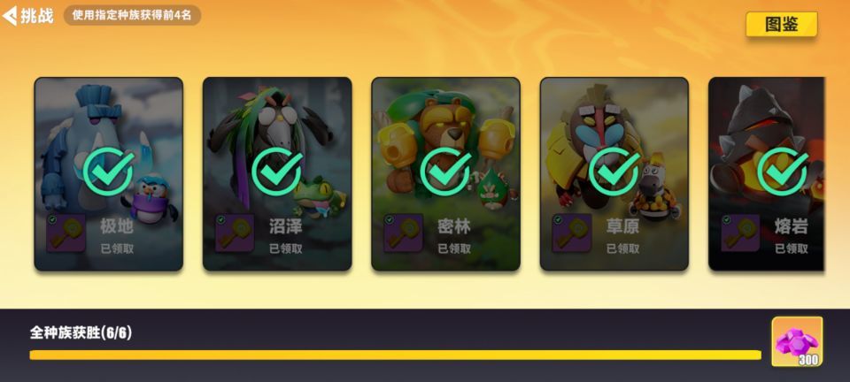 完成种族挑战任务可以获得6把【宝箱钥匙】300【钻石】