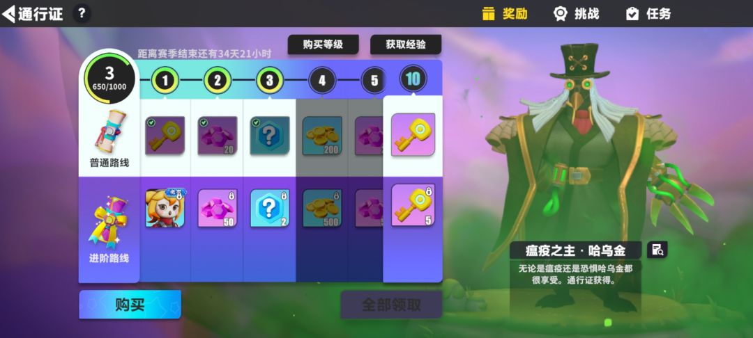 【通行证】每升1级都有奖励可以领的,里面包含【宝石】【宝箱钥匙】【金币】