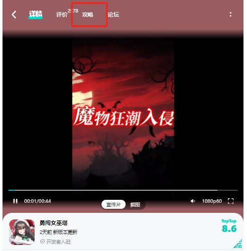 不知道大家有没有发现咱们《勇闯女巫塔》的游戏详情页面最近有些小变化,小MA最近在详情页面的攻略板块集中整合了一些论坛的精华内容和优质攻略,方便大家更快搜索到需要的攻略参考。