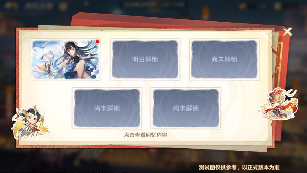 每回顾完成1段回忆都可以获得888*元宝!每天都会有新的回忆可以解锁,守护使大人不要忘记查看~