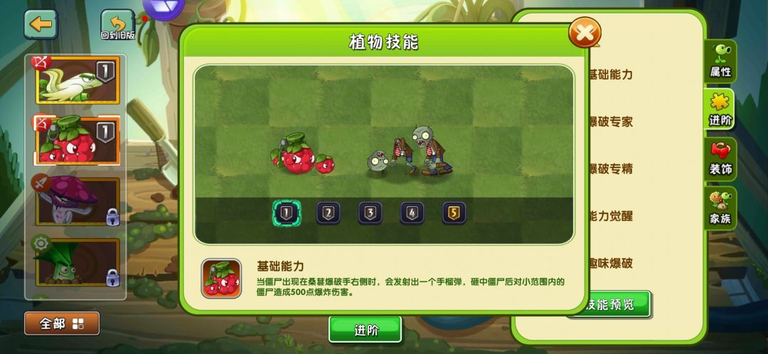 总结:该植物机制简单,一阶至四阶单体控制,五阶单格群体强控,装扮大招即为全图命中毒减速,意义不大,无尽5阶启用,1阶在回忆也有一定发挥,聚控阵最令甜薯安心的后援,但安卓499,iOS 648直接5阶带装扮