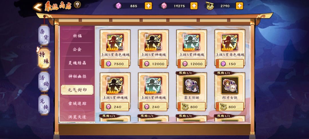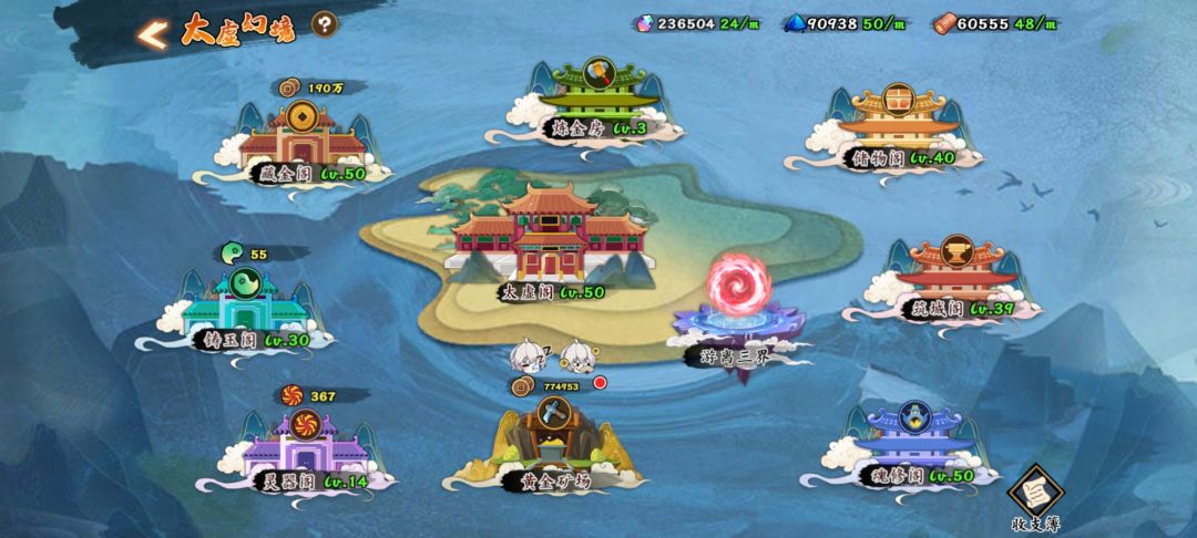 这里建议先升藏金阁,灵器阁,魂修阁,游离三界可以勾玉买两次次数,遇到商店买黄卷和高祈卷