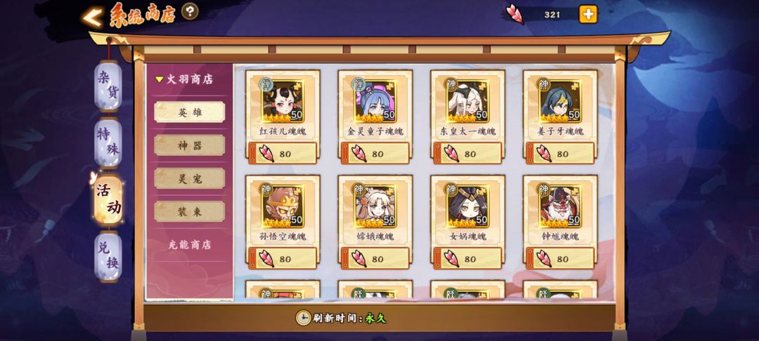这个就是用大佬的帝释天,轩辕姬每天打一下,当前活动每天打一次会出商店,这里建议买黄卷和进阶石