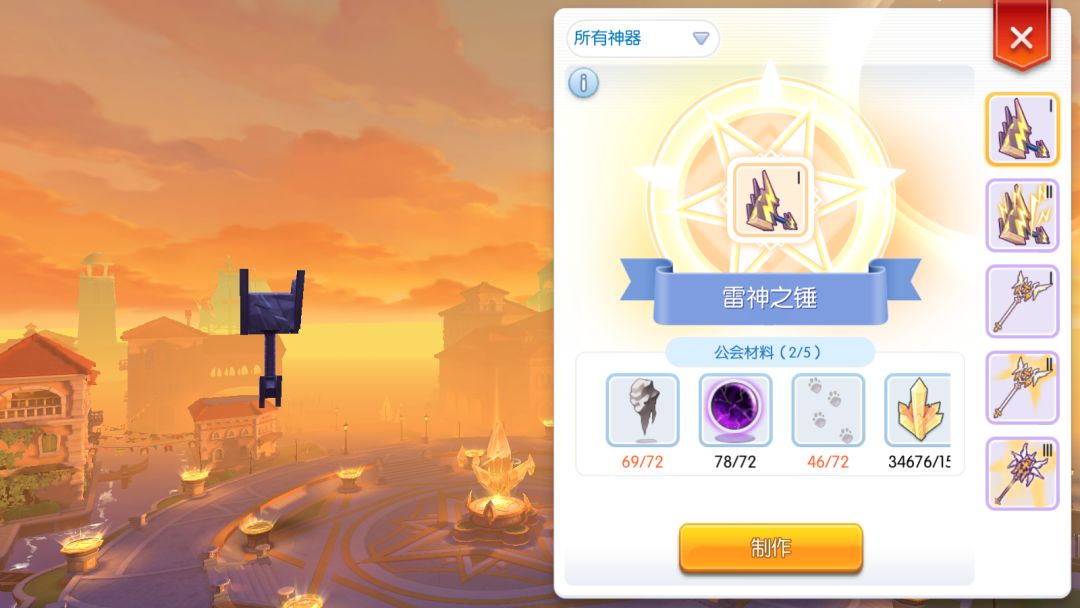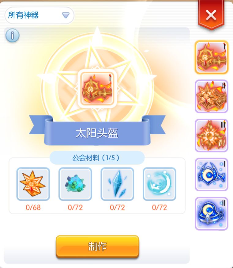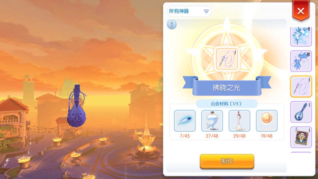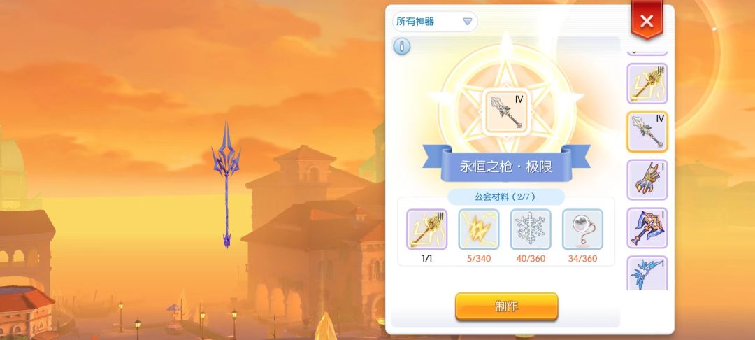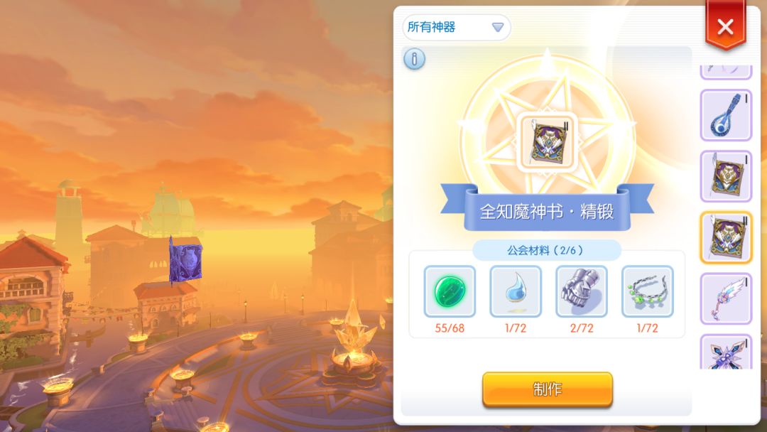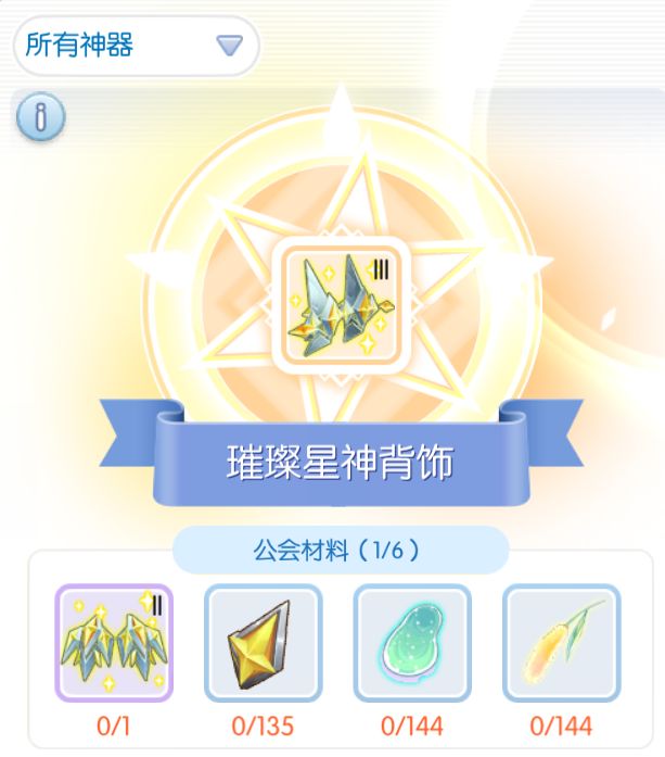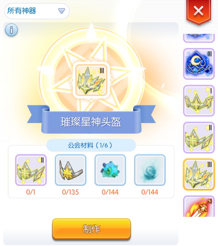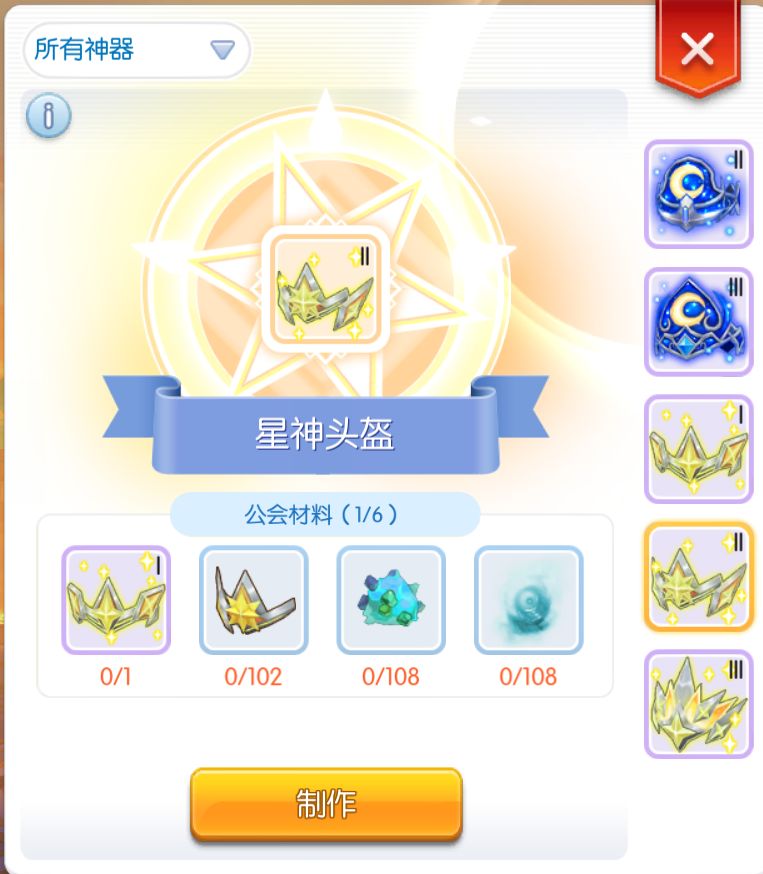 附上公会神器一览图,现在已经出4阶神器,需要用神器币兑换做