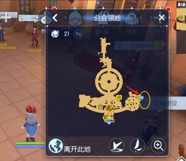 从公会领地进去,拐右边,会看到蓝色的传送口(如上方地图)