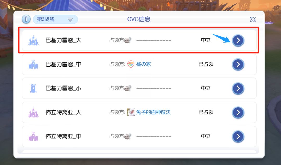 具体要看这些据点是哪些公会占领,点开右边的地图可以看到。